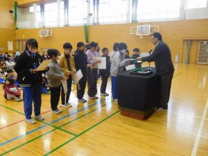 今朝の全校集会で,1月に取り組んだ書初め大会の表彰を行いました。山梨県特選や中巨摩支部入選の子どもたちに学校長より,表彰状が伝達されました。全校児童が一生懸命に取り組みました。書初めは,日本の大切な文化です。また来年もしっかりと取り組んでほしいと思います。