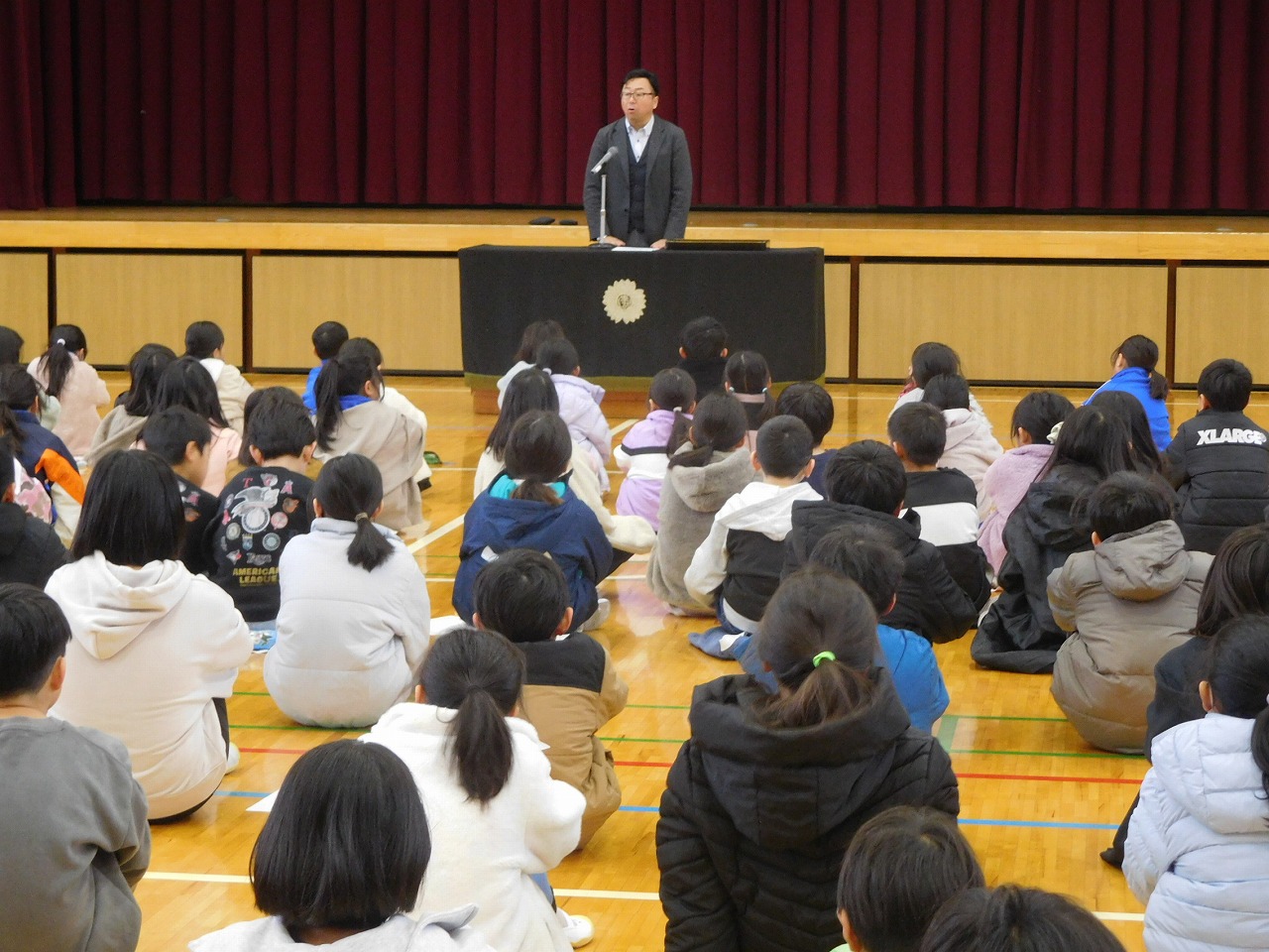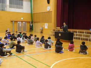 今朝の全校集会で,3学期の代表委員とあいさつリーダーの任命式を行いました。代表委員の任命は校長先生が,あいさつリーダーの任命は児童会長が行いました。代表になった児童のみなさんは,やる気に満ちた表情でした。校長先生からもあいさつの大切さについて話がありました。リーダーを中心に元気なあいさつがあふれる学校を作ってほしいと思います。