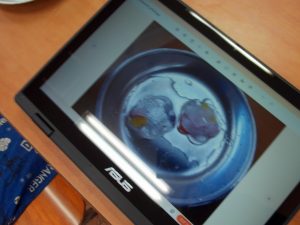 1日待つと・・・,きれいな花型のかたちの氷ができました。「きれいだね。」「冷たいね。」と,寒さも吹き飛ぶくらいみんな大興奮でした。