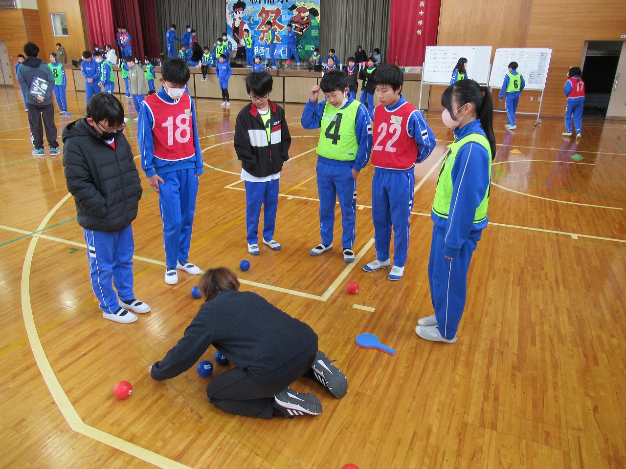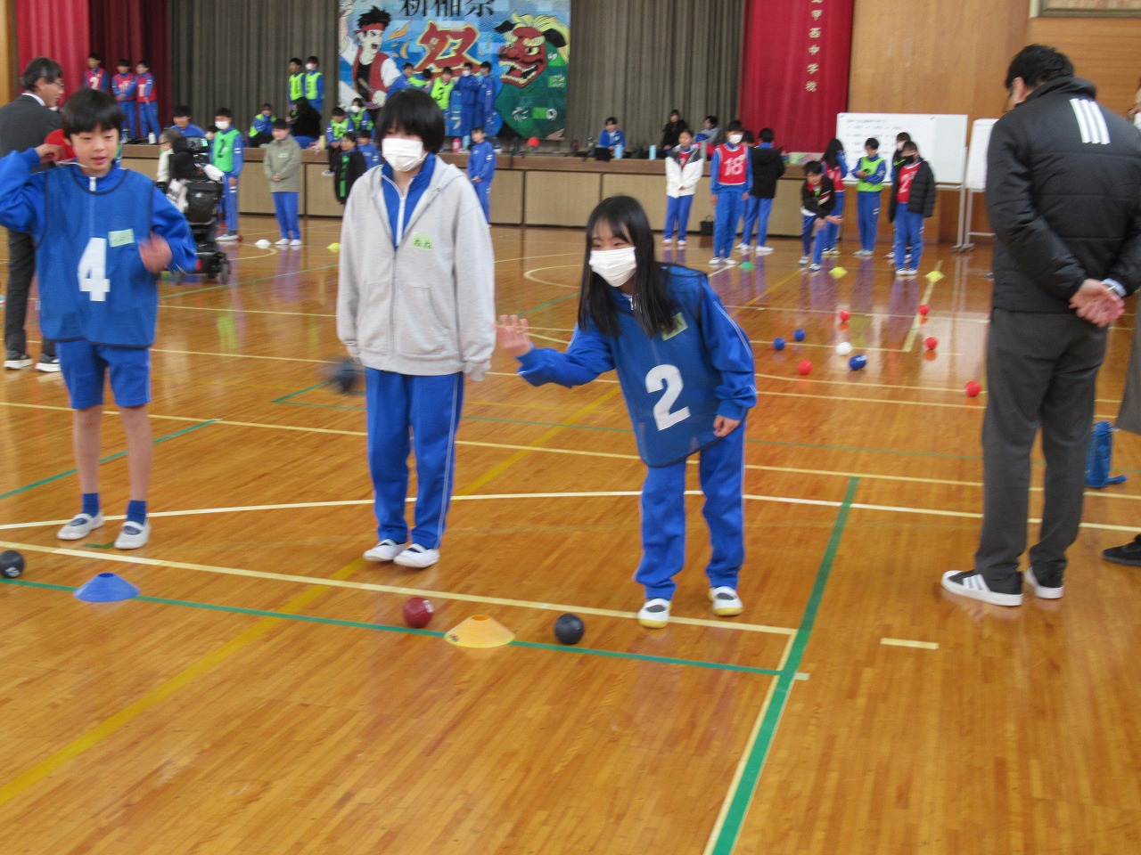 6年生の3校児童の交流を深めるために,昨年度からボッチャという競技を行っています。今年度は,甲西中学校の体育館をお借りして開催しました。最初にグループごと自己紹介をしました。その後,ボッチャ協会の方の指導を受けながら競技を行いました。ほとんどの児童が初めての体験で,最初は緊張していましたが,回を重ねるにつれ,上手にできるようになりました。半日という短い時間でしたが,4月から同じ中学校に行く友だちと楽しく親睦を深めることができました。