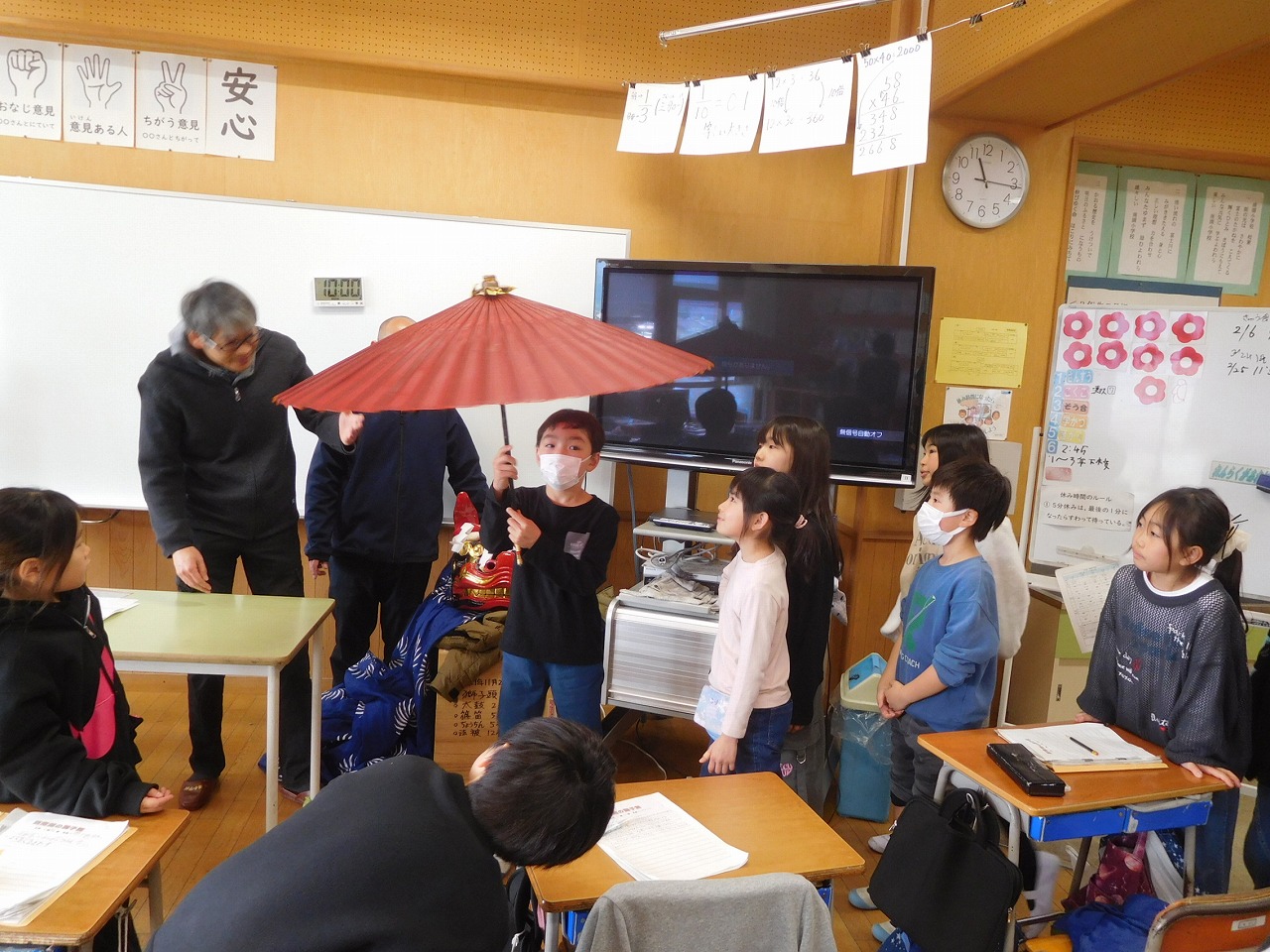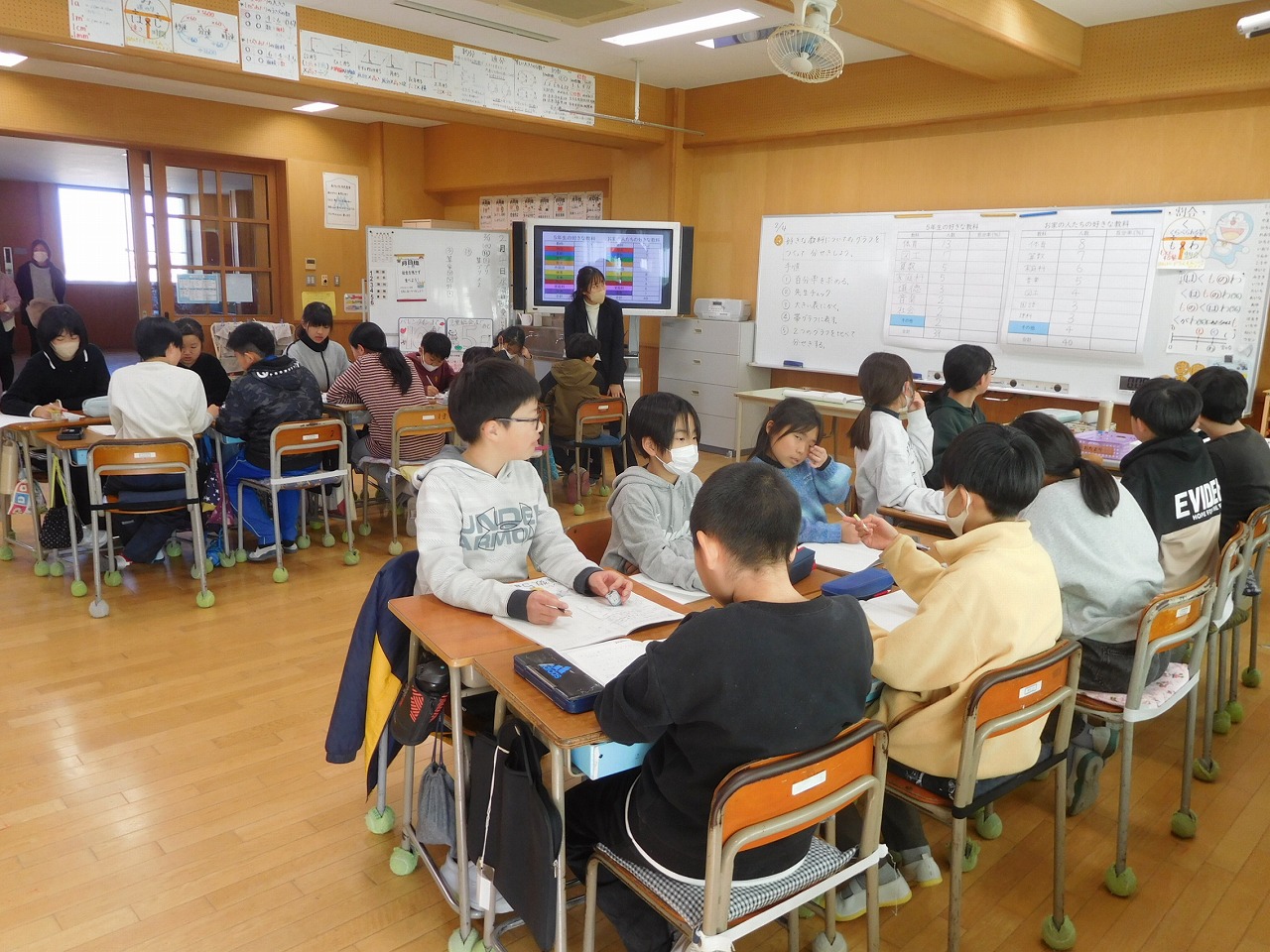 令和8年に入り,初めての授業参観を5年生が行いました。算数の割合の授業でしたが,事前に保護者の方や子どもたちにアンケートを行い,その数値を使ったものでした。「どの教科が好きですか」というアンケート結果をもとにしたので,子どもたちは意欲的に学習することができました。保護者の方々には,アンケートの協力,参観していただきありがとうございました。