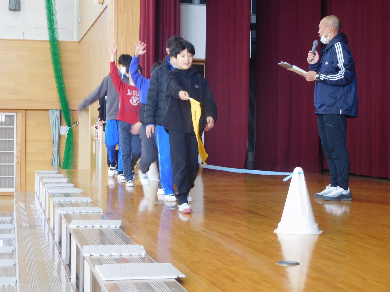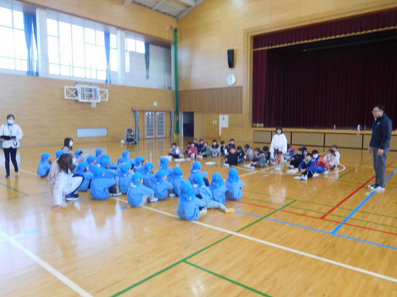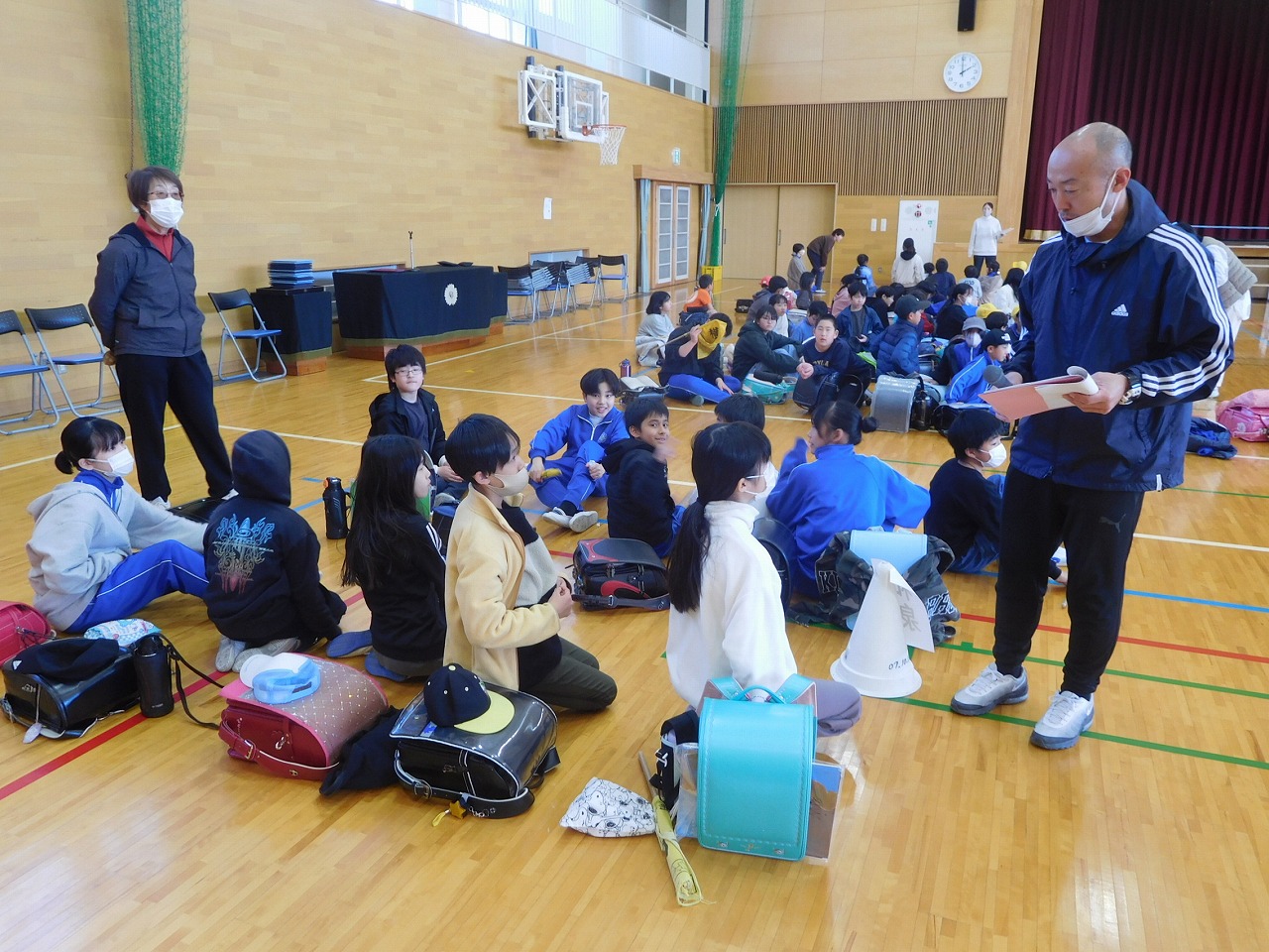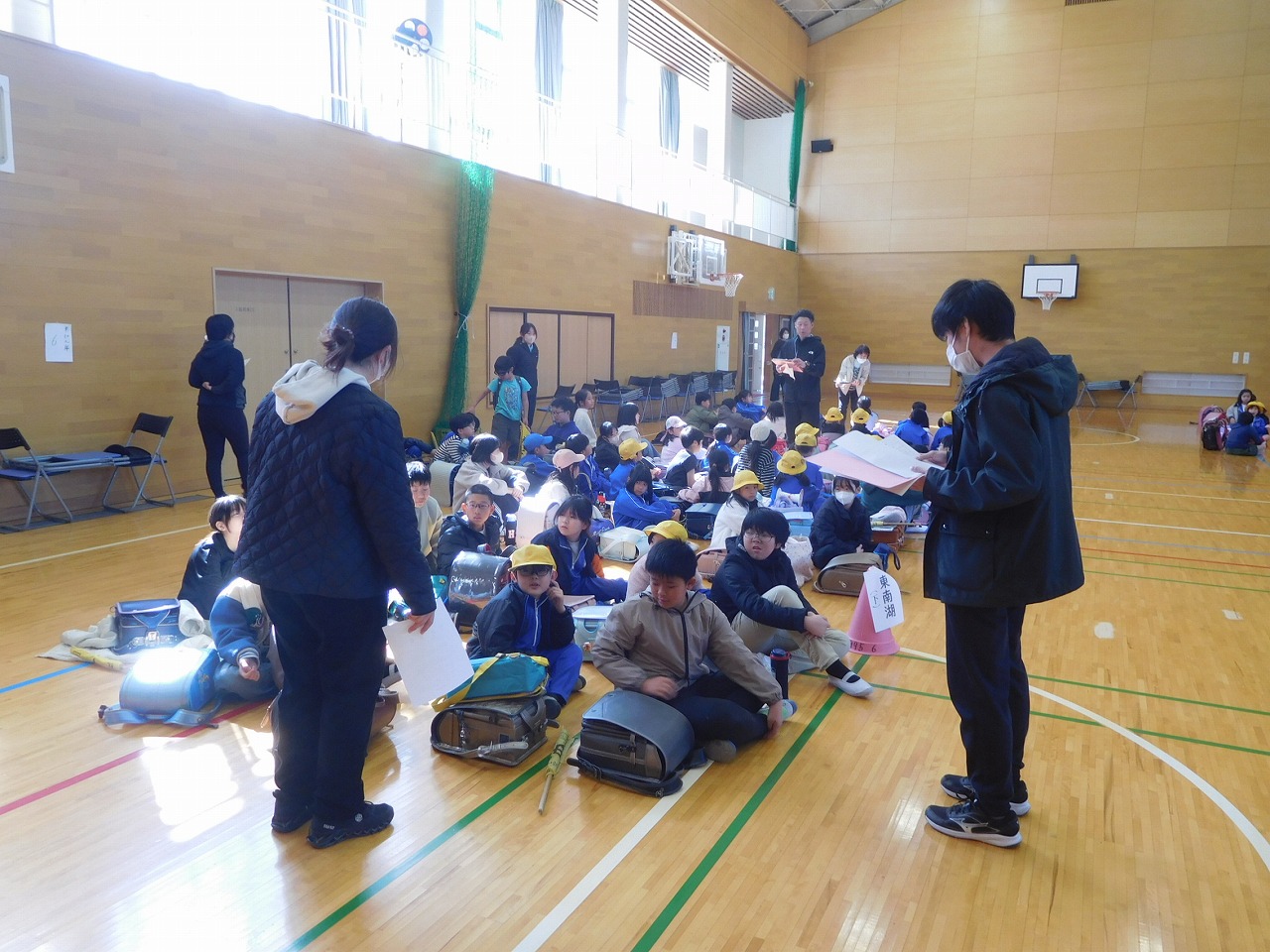 本日5校時に,次年度の登下校に向け,新の登校班の指導を行いました。まず地区担当職員が,班の名簿を確認したり,集合時刻や並び方を確認したりしました。その後,横断歩道の渡り方を全部の班が練習しました。明日からは,6年生の指導のもと,新しい班長さん・副班長さんが下級生を並べて登校してきてくれます。これからも安全に気を付けて登下校してほしいです。