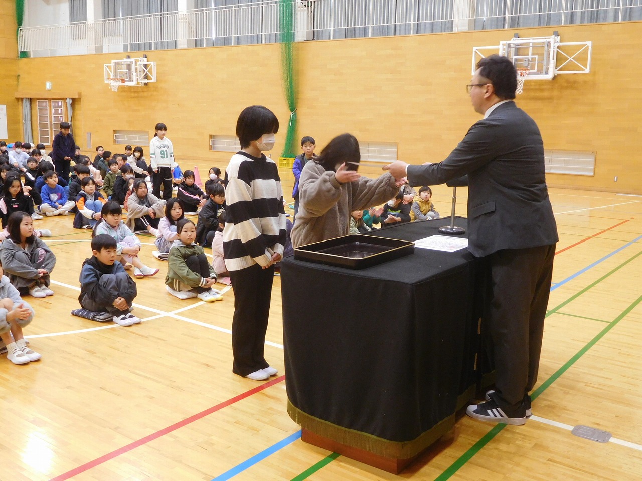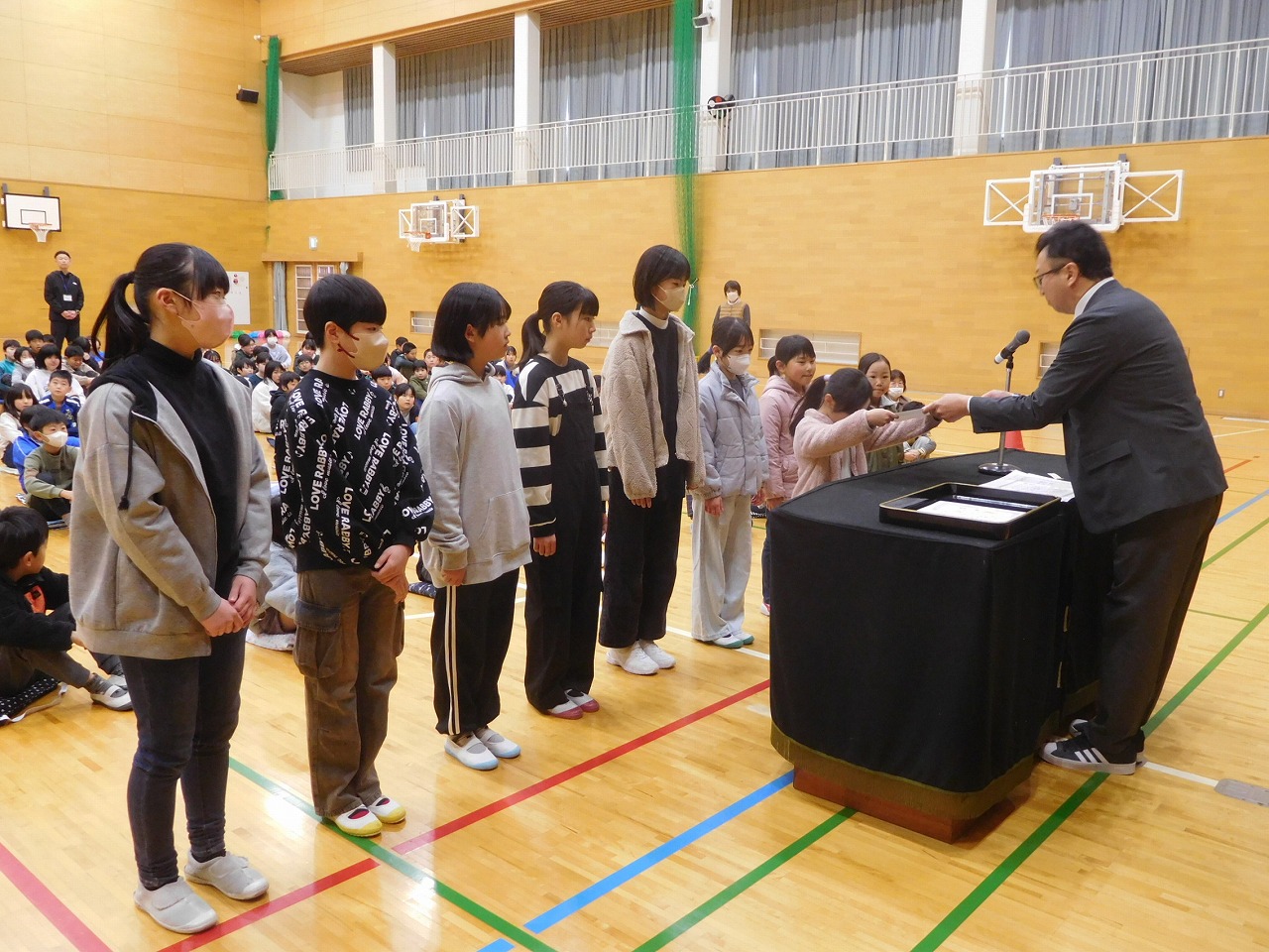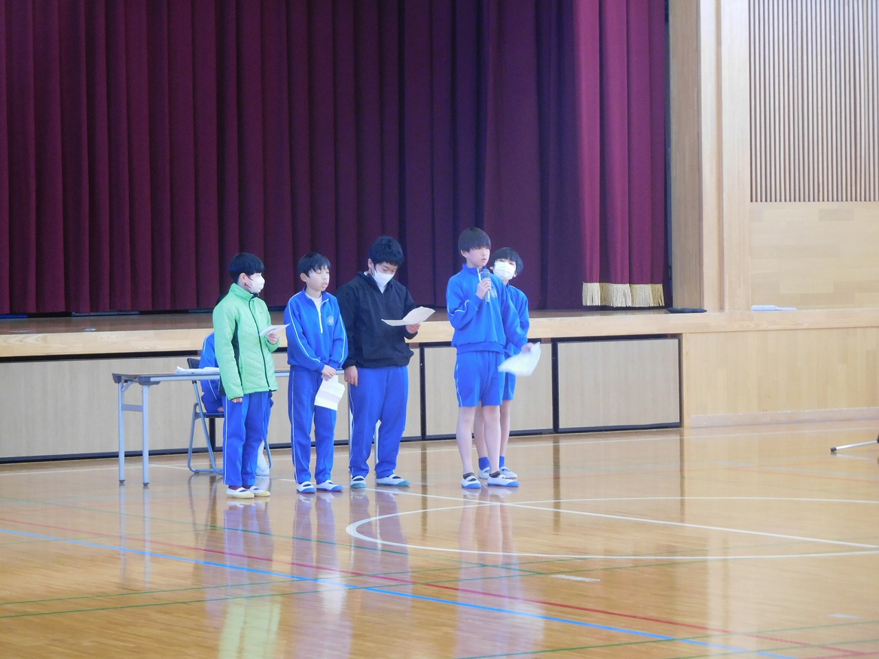 今日の2校時に第2回児童総会を行いました。内容は,1年間の児童会活動の反省です。クラスごと話し合い,代表の児童がクラスの意見を発表しました。また,各委員会の委員長さんたちも1年間の反省を発表しました。みんなクラスや委員会の代表者らしく,立派な発表ができました。その後,新児童会役員の任命式と引継ぎ式が行われ,いよいよ5年生に活動がバトンタッチされました。1年間,6年生は,最高学年らしく下級生をリードしてくれました。今度は,卒業式に向け,頑張ってほしいです。